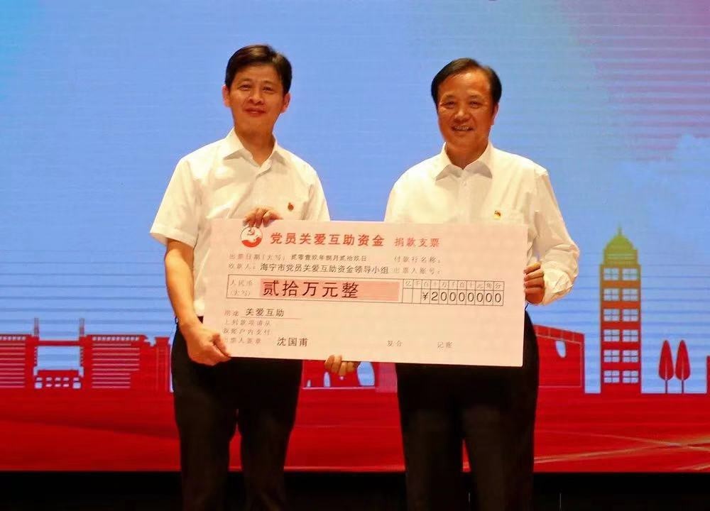黨委書記沈國甫捐款20萬助力海寧市黨員關(guān)愛互助資金成立