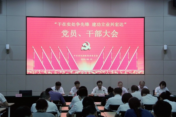 2020年8月15日下午,中共宏達(dá)控股集團(tuán)黨委在宏達(dá)高科控股股份有限公司召開“干在實處爭先鋒,建功立業(yè)興宏達(dá)”黨員干部大會,慶祝中國共產(chǎn)黨成立99周年,動員集團(tuán)廣大黨員干部為建設(shè)“重要窗口”多作貢獻(xiàn)。集團(tuán)黨委書記、董事長沈國甫攜全體黨委成員、集團(tuán)所屬支部全體黨員及入黨積極分子、部門助理以上干部共65人參加會議。