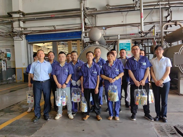 7月14日上午,宏達高科控股股份有限公司總經(jīng)理許建舟、副總孫云浩、工會主席胡朗秋、財務總監(jiān)王鳳娟、生管部長陸維敏等一行來到公司高溫生產(chǎn)車間,慰問在酷暑中堅持工作的生產(chǎn)一線員工。