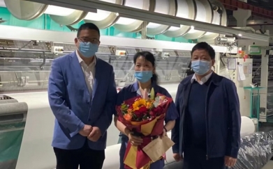 4月29日,許村鎮(zhèn)工會(huì)主席俞建強(qiáng)來到宏達(dá)高科慰問浙江省勞模趙巧娟。